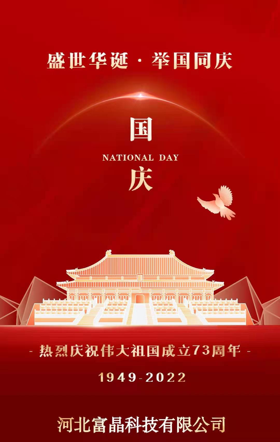 何其有幸,生于華夏,長于盛世,愿祖國繁榮昌盛,山河無恙!河北富晶科技有限公司祝祖國生日快樂!